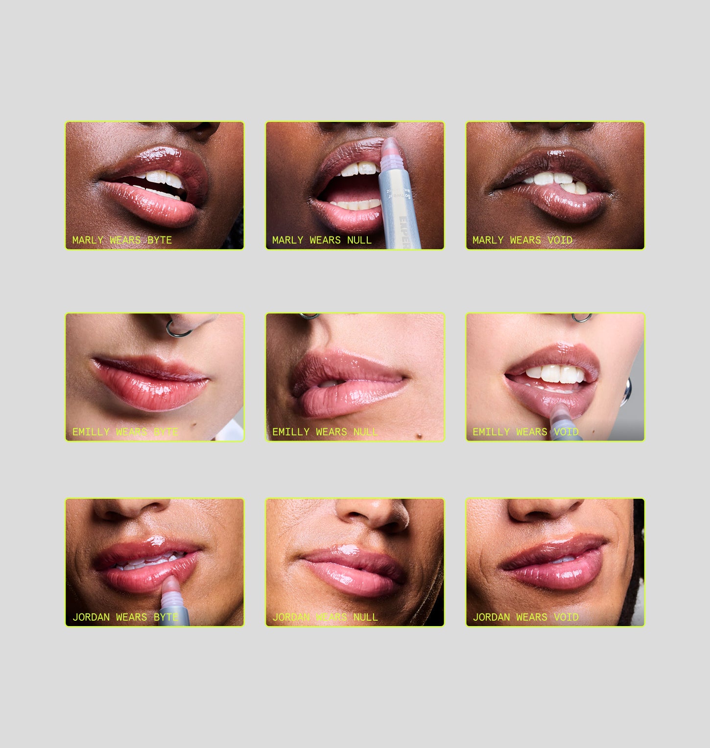 For color that doubles as care. Our clinically-tested Softwear Lip Treatment just got a limited-edition color update for the holidays. The Softwear Update gift set pairs best-selling Zero (clear) with three multitasking shades designed to play with your natural lip tone: smoky black-brown Void, cherry-brown Byte, and soft greyed nude Null. Create endless looks by pairing with your favorite lip combo to shift shade into something entirely new. The giftable keepsake tin can easily be repurposed to store skincare, trinkets, and more!