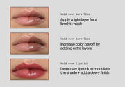 Layer over lip liner or lipstick to shift shade + add a dewy sheen.